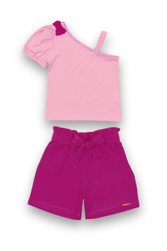 Conjunto composto por blusa em cotton penteado 96% algodão 4% elastano e shorts em malha Vicenza 98% viscose 2% elastano.