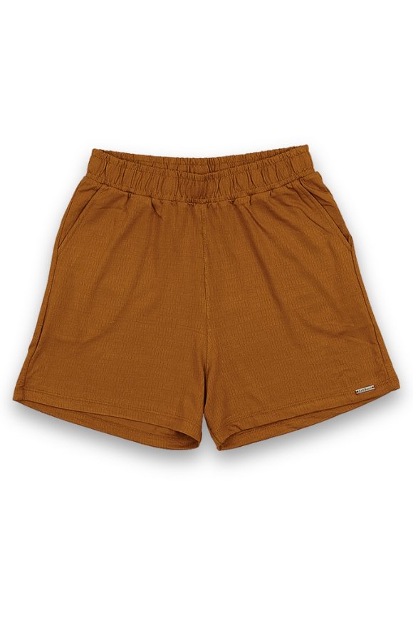 Shorts teen em malha Vicenza 98% viscose 2% elastano, com plaquinha prata da marca.