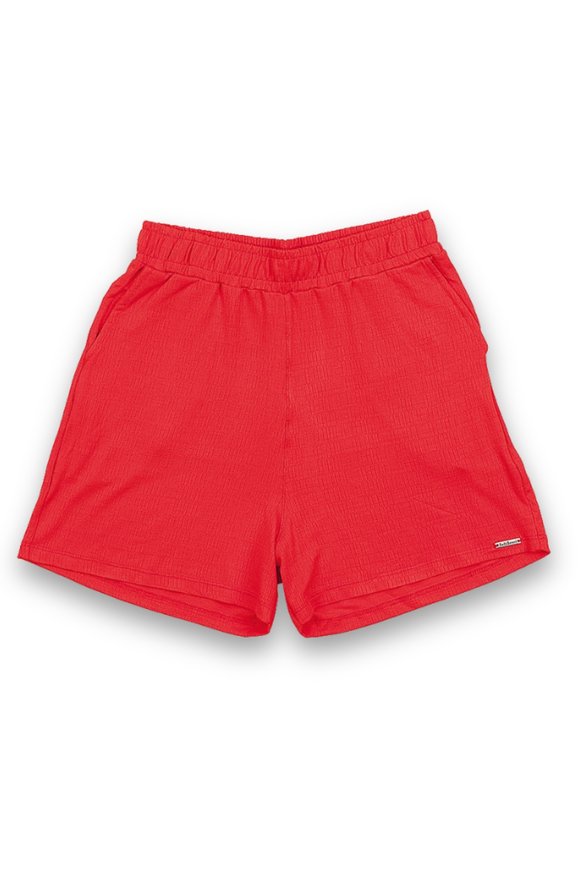 Shorts teen em malha Vicenza 98% viscose 2% elastano, com plaquinha prata da marca.